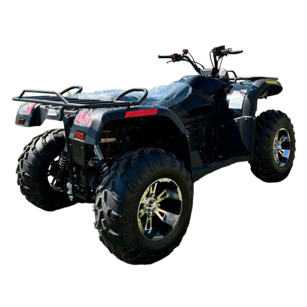 Черный цвет квадроцикла придаёт ему защитный вид и позволяет скрываться на ночных маршрутах. Квадроцикл также имеет систему блокировки, которая обеспечивает безопасность и защиту ваших личных вещей.