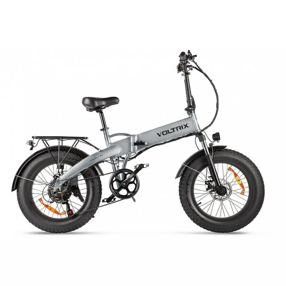 Велогибрид VOLTRIX City FAT 20 серебристый стал лидером продажа этого сезона. При массе техники 27 кг общая грузоподъемность составляет 110 кг, допускает транспортировку груза, катание ребенка на багажнике.