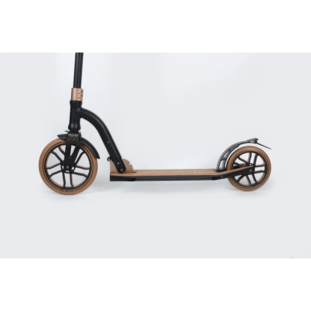 Самокат TRACKER 250 brown  - шикарная модель техники, представленная в конце ушедшего сезона. Привлекательный самокат порадовал шикарными формами, отсутствием острых углов, оригинальной начинкой и отличным накатом. Купить самокат по цене производителя предлагает наш магазин. Сотрудничество с нами обещает удобную форму доставки и оплаты, бесплатное консультирование, профессиональную помощь, приобретение других аксессуаров по бюджетной стоимости.